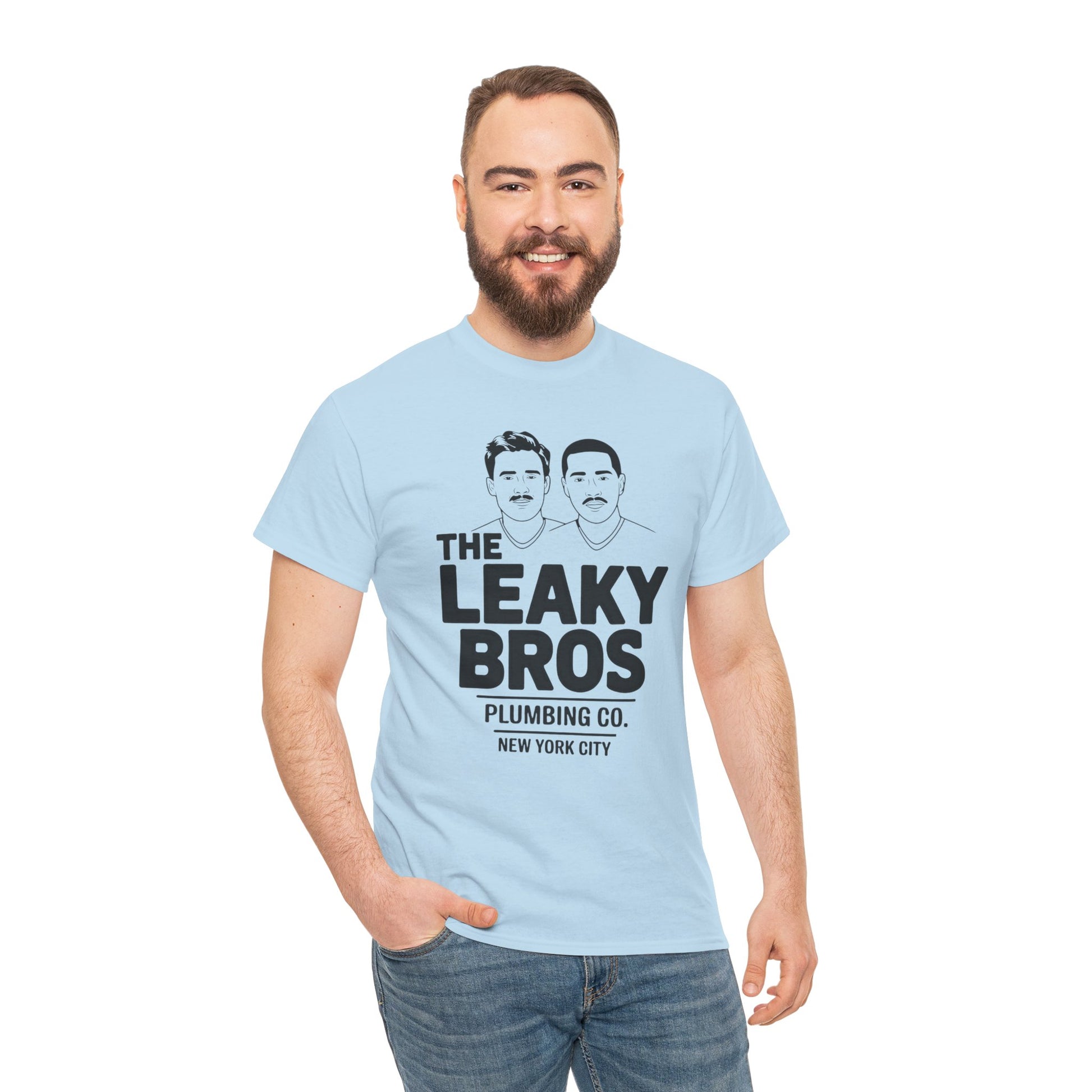 *Original design from The Haunted Disco * Double sided: Front reads: Leaky Bros Plumbing Company; Back reads: We'll Clean Up Every Drop * Leaky is a reference to pre-cum or pre-ejaculate * Shirt is designed to be coded to wear / pass in public with only other kinky gays to know what you are really referencing