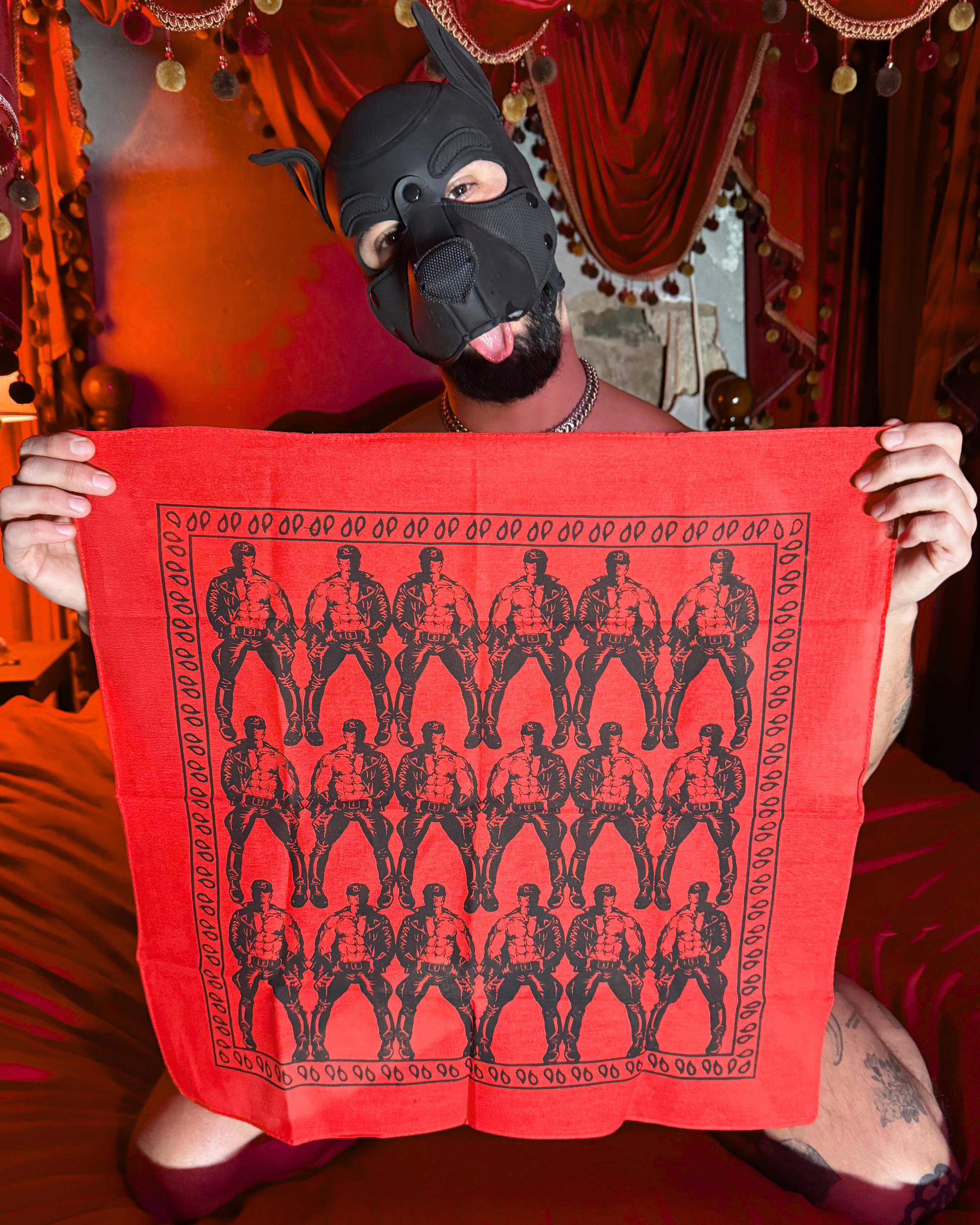 Each print is hand silk-screened in NYC in small batches, so no two are ever alike. The linework is bold, erotic, and archival — a visual love letter to the golden age of underground illustration. Whether worn as a flag, framed as art, or tied for trouble, it’s a piece that speaks fluent queer history.