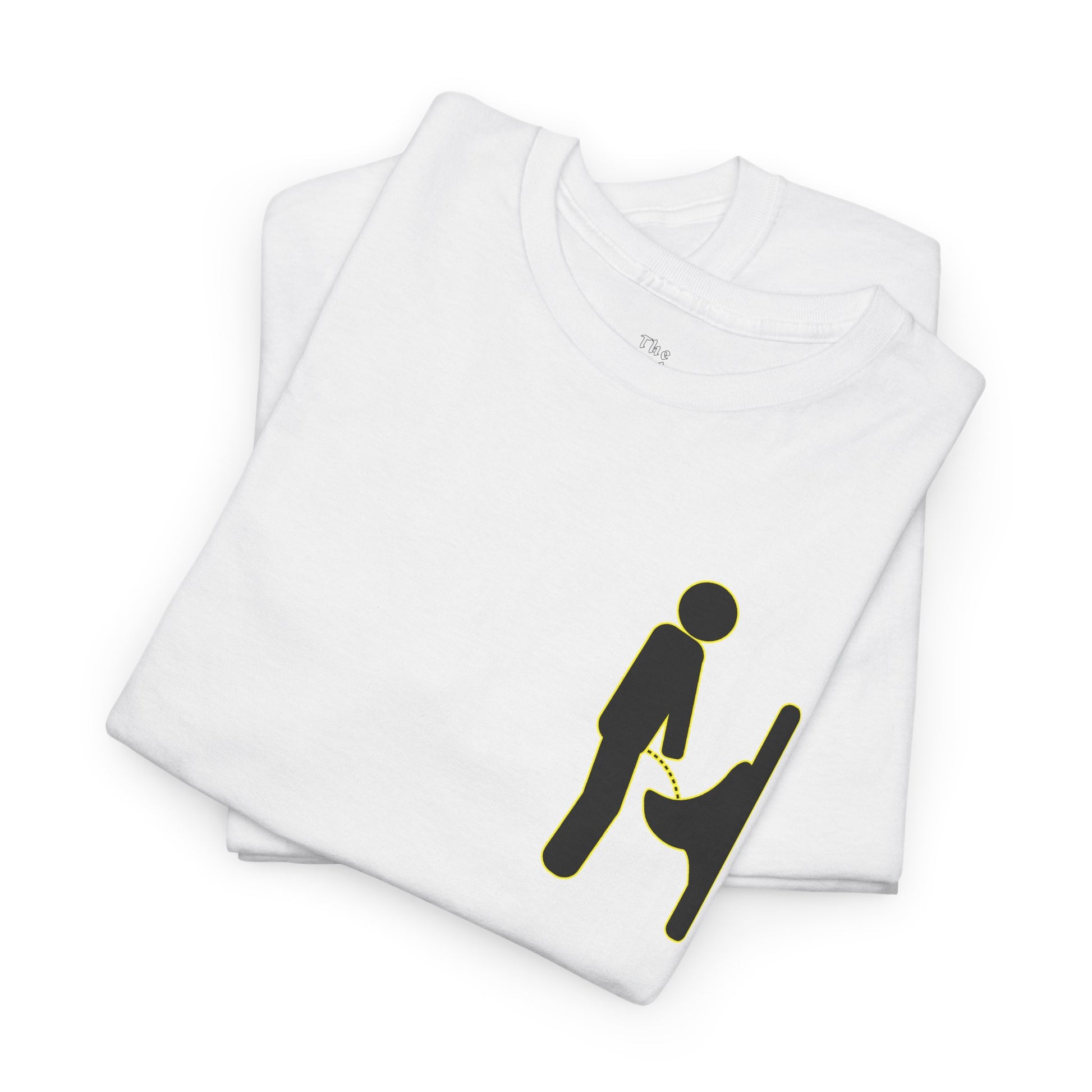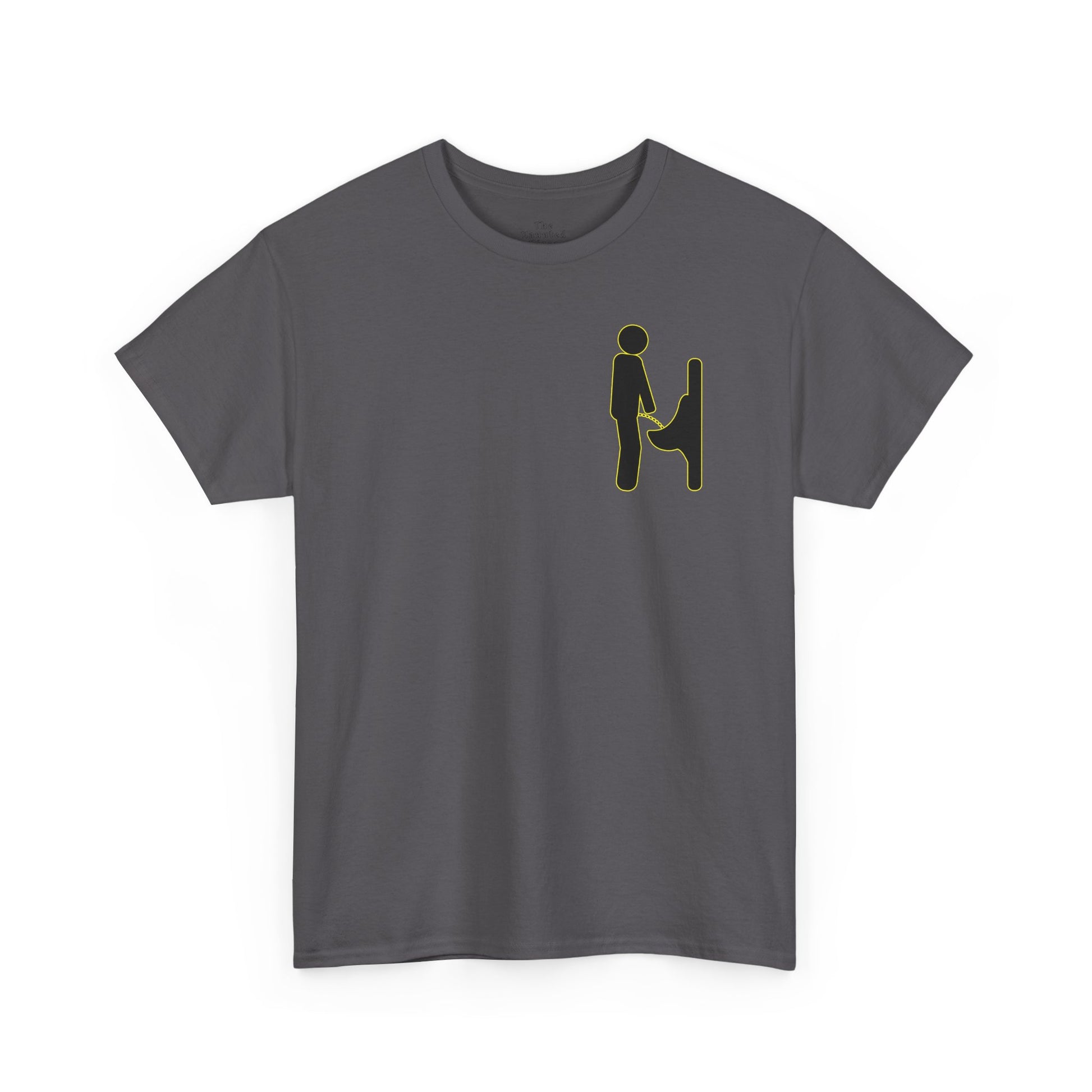 This graphic tee features a minimal, pictogram-style illustration inspired by public restroom signage—reduced to its most familiar shapes and stripped of context just enough to invite a second look. At a glance, it reads clean and graphic. Look longer, and it reveals itself as something more charged.