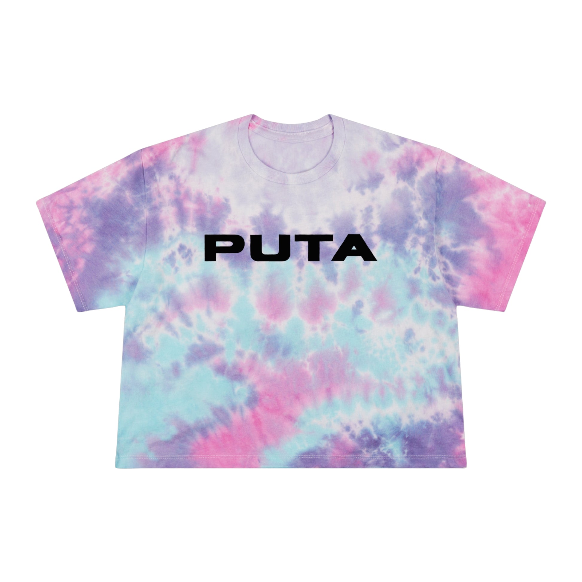 SEE SIZING CHART. XS and S run big. Medium run true to standard unisex. L and XL run small. Unisex tie-dye crop tee featuring the words 'Puta' in vibrant colors, perfect for summer and showcasing LGBT pride. Gives off a carefree and inclusive vibe, great for those who want to make a statement. Relevant for LGBT Pride Month celebrations and summer parties. Product features - Dropped shoulders for a relaxed fit - 60% Pre-shrunk cotton 40% Polyester for durability - Light fabric for comfort (5.4 oz/yd²) - Relaxed fit for a casual look - Shirt colors and pattern may vary for a unique touch Care instructions - Machine wash: cold (max 30C or 90F) - Do not bleach - Do not tumble dry - Iron, steam or dry: low heat - Do not dryclean