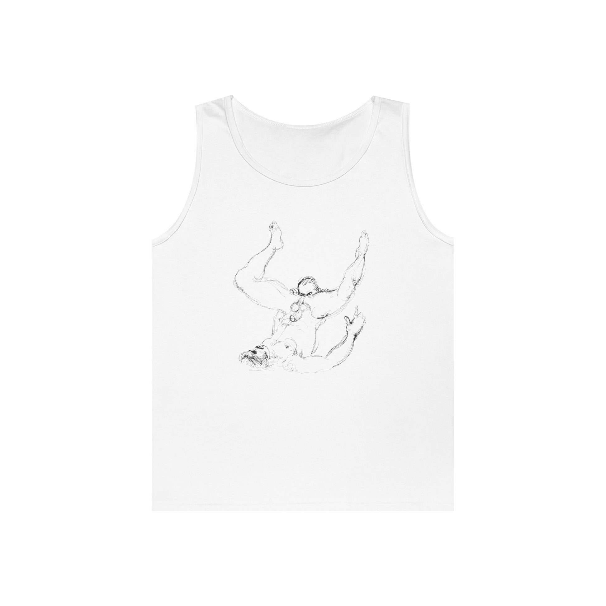 Why whisper when you can shout? This tank features erotic line art that makes it clear: queer sex is art. Bodies in motion, legs in the air, and a mouth exactly where it belongs—this shirt doesn’t imply, it declares. Perfect for the leather bar, the afterparty, or anywhere you want your fashion as unapologetically horny as you are.
